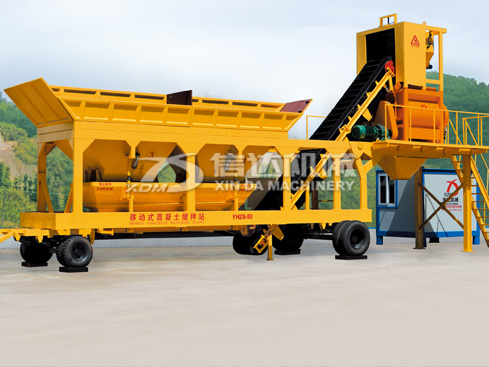 移動式混凝土攪拌站是一種可拖掛移動的攪拌設備,以一個集中拖掛單元,將集料、稱量、攪拌、輸送等作業于一體。適合于公路、橋梁等需要混凝土量比較小的工程移動施工。
